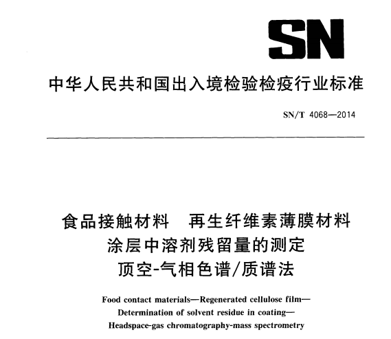 SNT 4068-2014 食品接觸材料 再生纖維素薄膜材料 涂層中溶劑殘留量的測定 頂空-氣相色譜質(zhì)譜 SN/T4054-2014出口保健食品中育亨賓、伐地那非、西地那非、他達(dá)那非的測定液... 更新日期:2020-05-09 下載包(1)